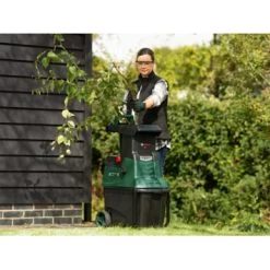 Een hakselaar is een ander woord voor versnipperaar. De Bosch hakselaar AXT 25 TC is multifunctioneel en zorgt met zijn zogenoemde Turbine-Cut System voor een zeer snelle materiaaldoorvoer tot wel 230kg/u. Zo heb je jouw tuinafval binnen no time versnipperd. Zelfs takken en struiken tot een dikte van 45mm worden verwerkt zonder te blokkeren. De trechter kun je eraf halen waardoor de hakselaar 30% kleiner wordt dan zijn voorganger. Zo krijgt de machine een hoogte van slechts 67cm, zodat je hem eenvoudig op kunt bergen. De hakselaar heeft een zeer krachtige motor met een vermogen van 2500 watt. Kortom: een goede versnipperaar voor verschillend soort tuinafval.
