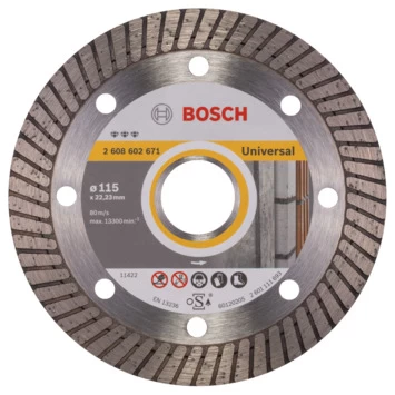 Diamantdoorslijpschijf Best for Universal Turbo 115 x 22,23 x 2,2 x 12 mm. Uitstekende snijcapaciteit in alle bouwmaterialen, bijzonder geschikt voor zuivere snijranden zonder gebroken randen dankzij rondlopende slijprand. Onze beste Turbo diamantdoorslijpschijf. Gesinterde slijprand.